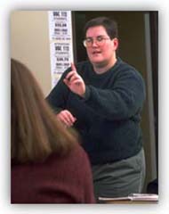 Lee Dray, shown working with a student, is the instructor for UB's new courses in American Sign Language (ASL). |