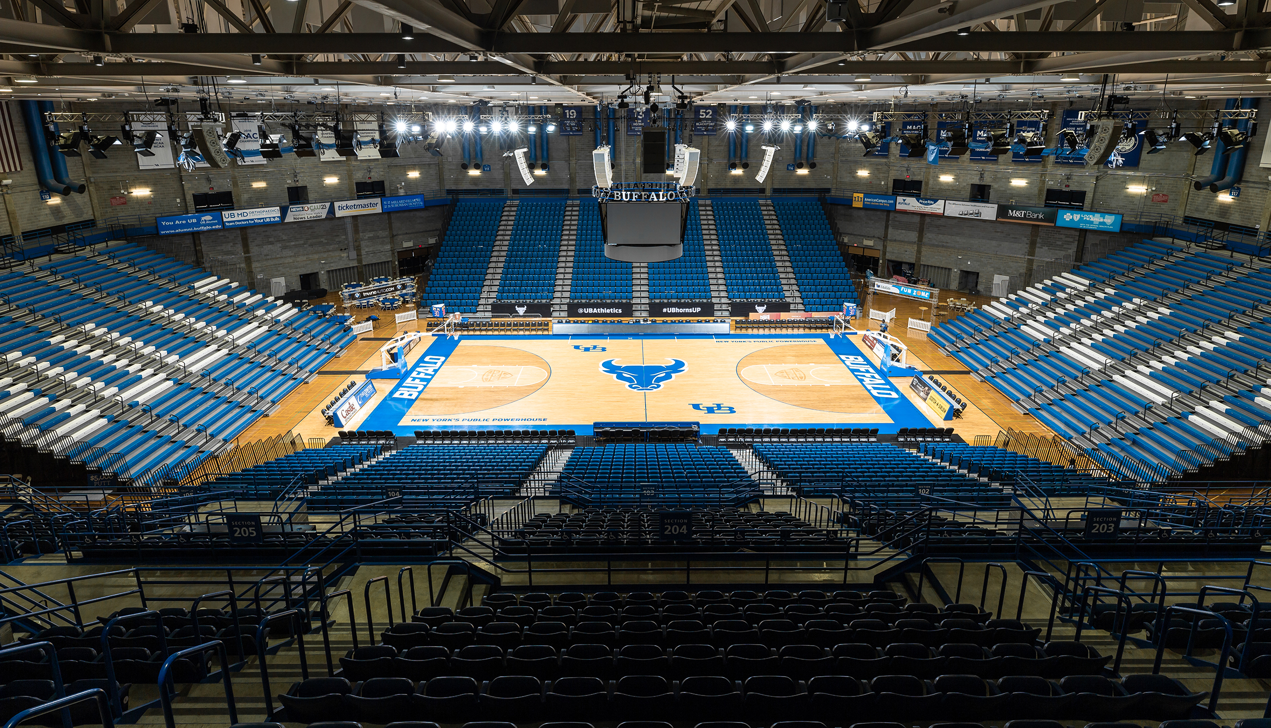 The arena is dedicated to UB's alumni. Steven Sample, who served as UB president from 1982 to 1991, believed that a strong athletic program could enrich the academic experience. He helped establish Alumni Arena to build university spirit among students and staff.
