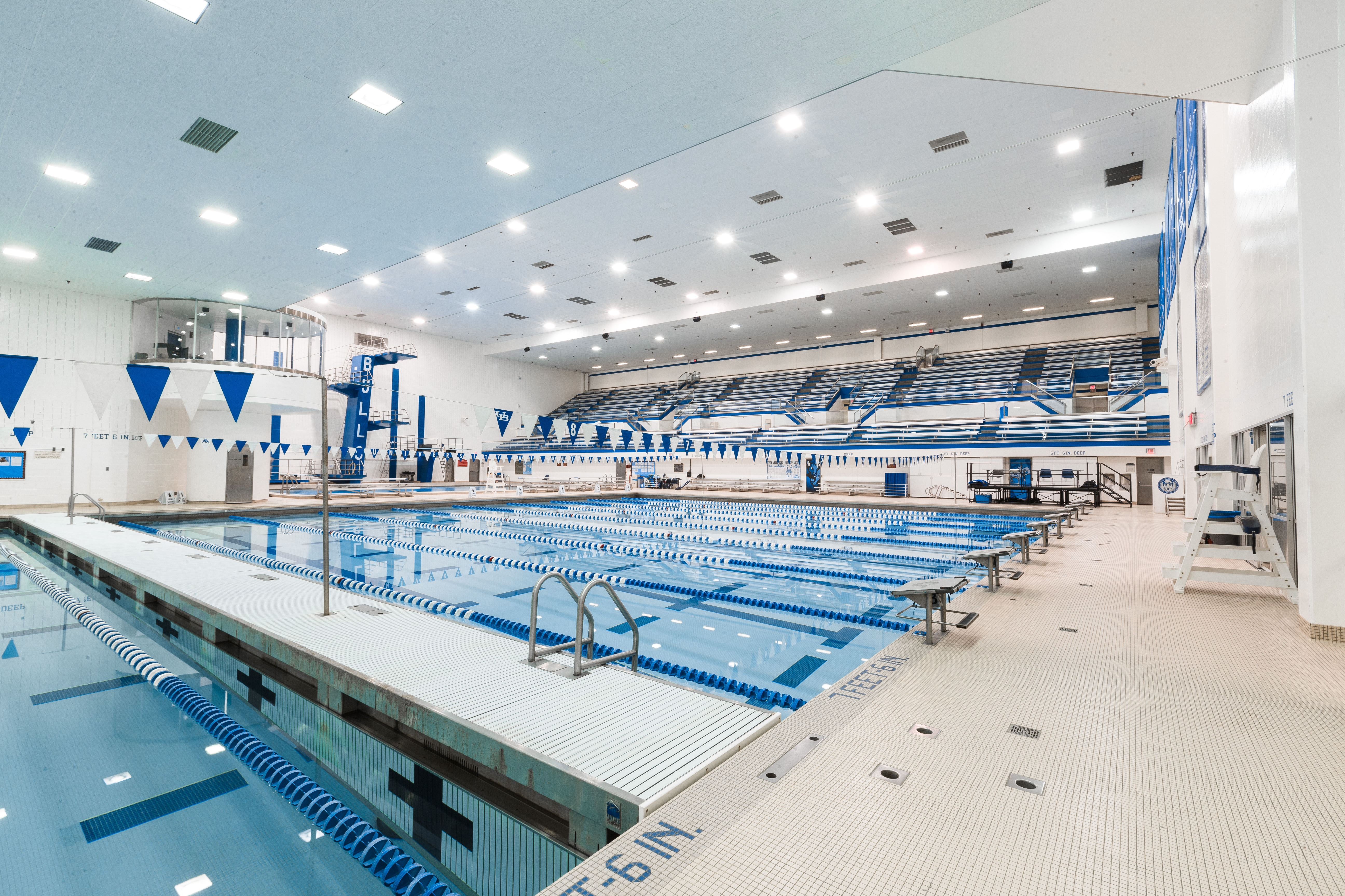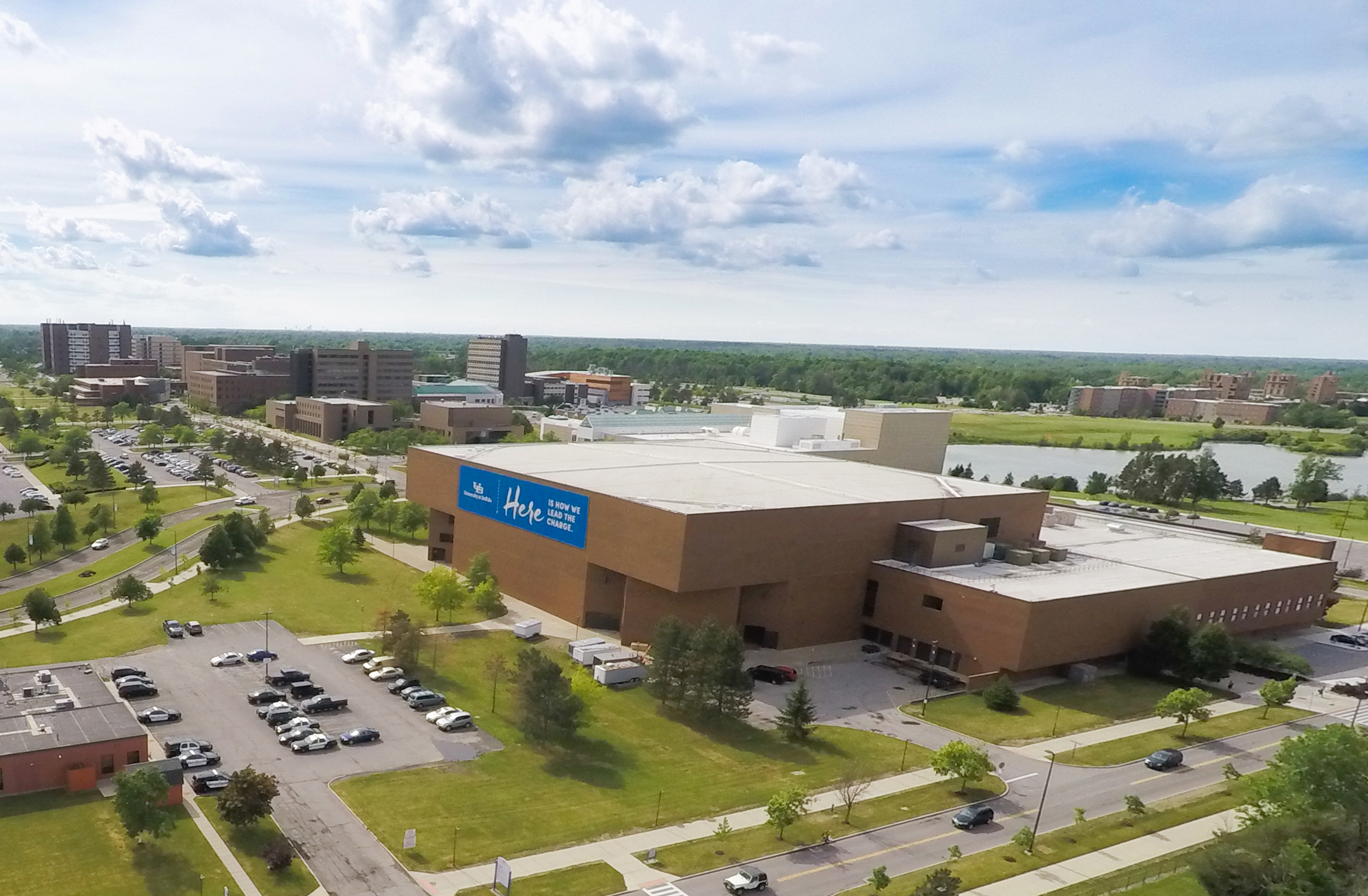 Alumni Arena is a world-class facility that houses the university's NCAA Division I sports teams and faculty. It's the place for men's and women's Mid-American Conference basketball competition, fitness activities, Distinguished Speakers Series lectures and large-scale events, including general commencement. The building was constructed in two phases in 1982 and 1985. The addition included a gymnastics area, activity rooms, locker rooms, and racquetball courts, among other uses. Alumni Arena also includes a 6,000-seat gym for basketball, wrestling or volleyball (also the site of commencements and lectures by prominent speakers) and a natatorium. The gym is also home to a 50-meter Olympic pool with a 1.2-million-gallon capacity. It's also home to the Department of Theatre and Dance.