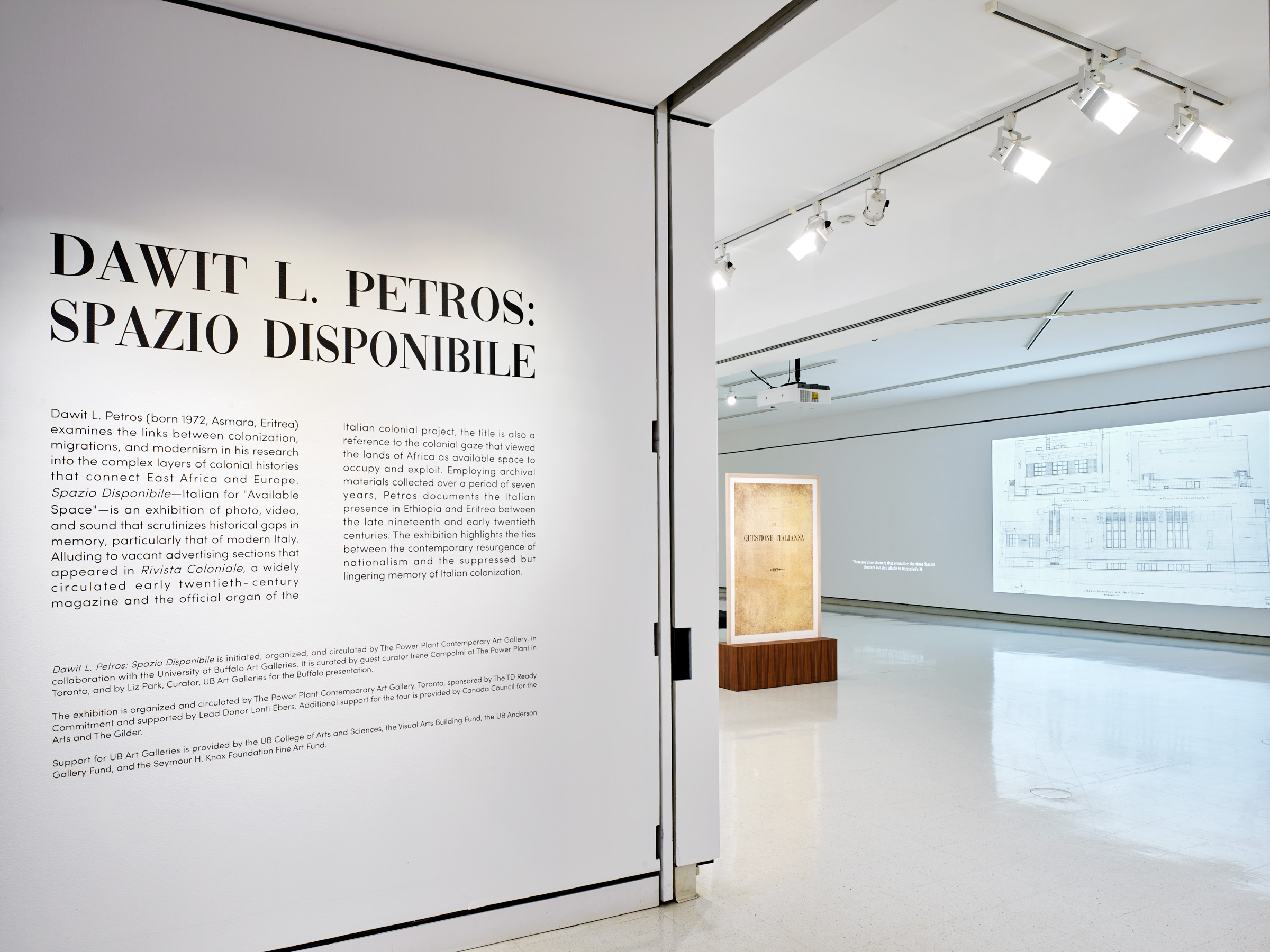 Gallery Image Credits: (all) Dawit L. Petros: Spazio Disponibile, 2020, installation view, University at Buffalo Art Galleries. Photo: Biff Henrich