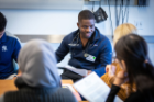 Depictions of students in a classroom or working environment should feel intimate and authentic. Natural light should be used whenever possible. Single students should never seem lonely, and groups should always seem collaborative. Capturing a sense of curiosity, interest or discovery is a great way to accomplish this.