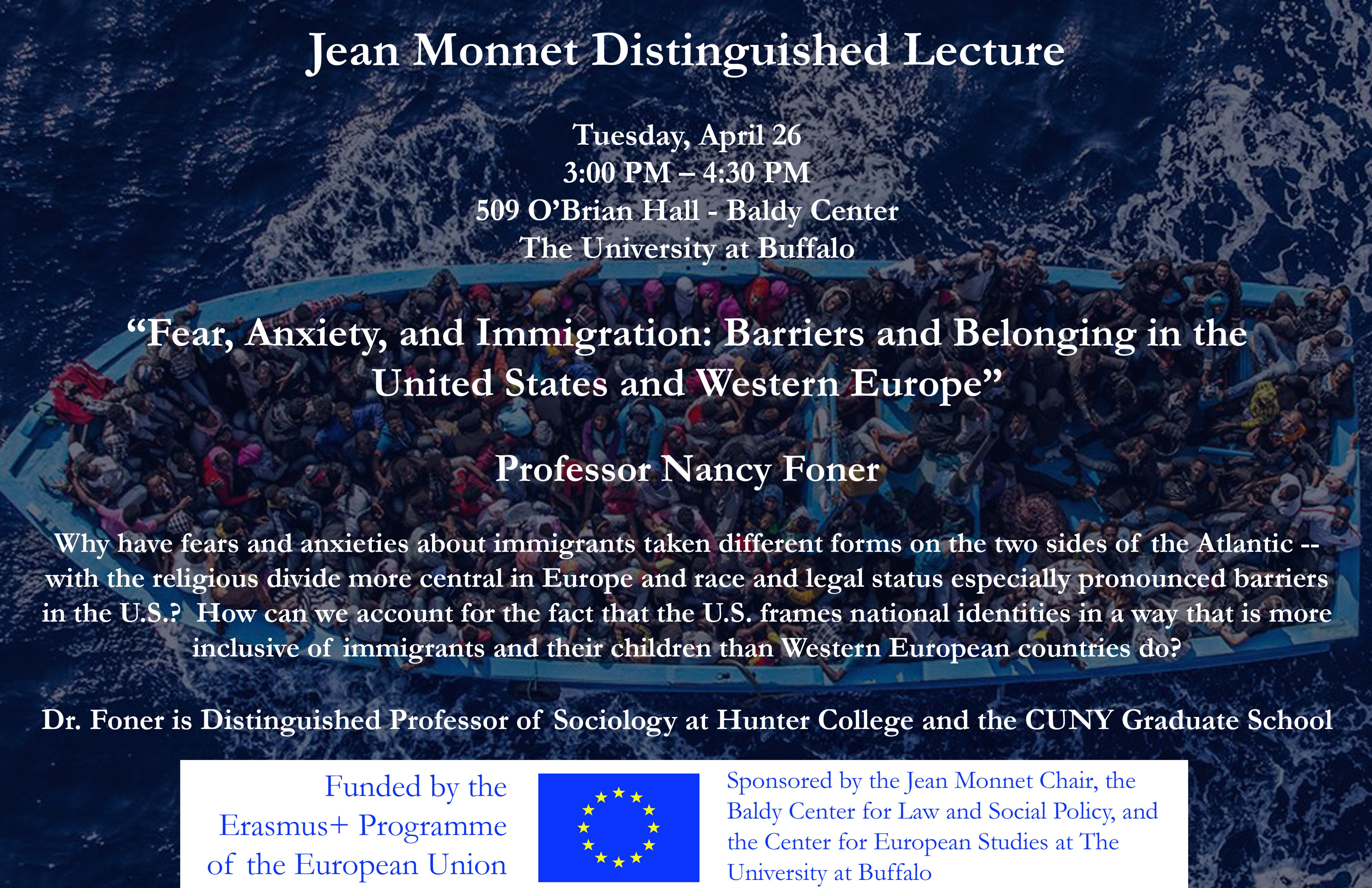 Professor Nancy Foner presented the Inaugural Jean Monnet Distinguished Lecture at the University at Buffalo, sponsored by the Jean Monnet Chair.