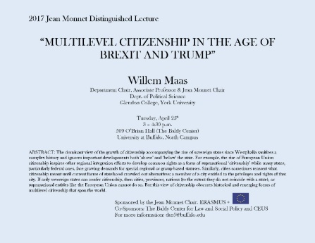 Professor Willem Maas will present the 2016-7 Jean Monnet Distinguished Lecture at the University at Buffalo.