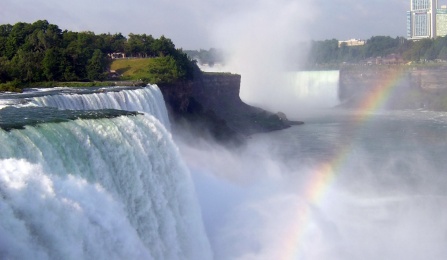 Rainbows are often seen over Niagara Falls, a short drive from our campus. The world-famous attraction features a set of three large waterfalls on the Niagara River in the Golden Horseshoe Region of Southern Ontario and the Buffalo-Niagara Region of Western New York. The river flows from Lake Erie to Lake Ontario, and is the geophysical border between Canada and the United States. (Photographed in Summer 2014 )