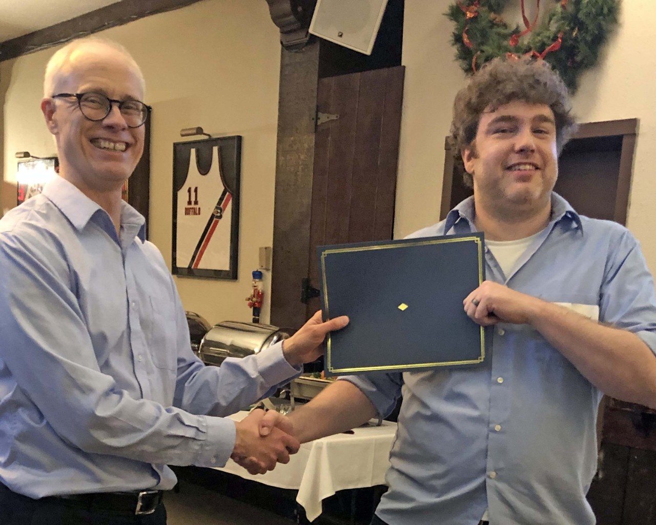 Dr. David Braun (left) presents the 2018 Thomas D. Perry Award for Best Dissertation Defense to Clint Dowland.