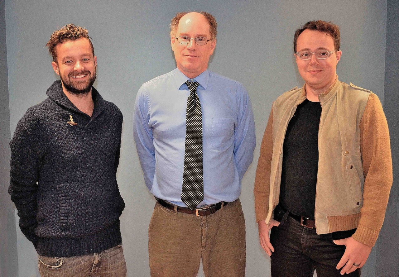 The Hare Award for Outstanding Department Citizenship was shared between Rasmus Larsen (left) and Neil Otte (right). The award was presented by Professor David B. Hershenov, Department Chair (center).