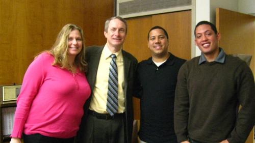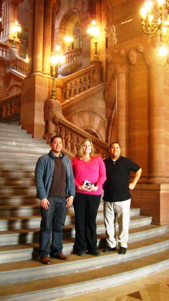 Individuals attending the 2013 Albany Caucus stand on the stairs