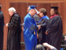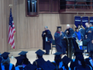 Faculty, graduates and audience recite the Pledge of Allegiance