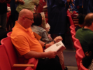 Audience member waits for program to start