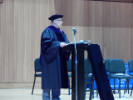 Faculty member addresses waiting graduates