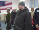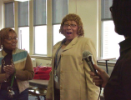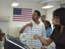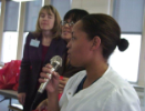 small group of people, one with microphone
