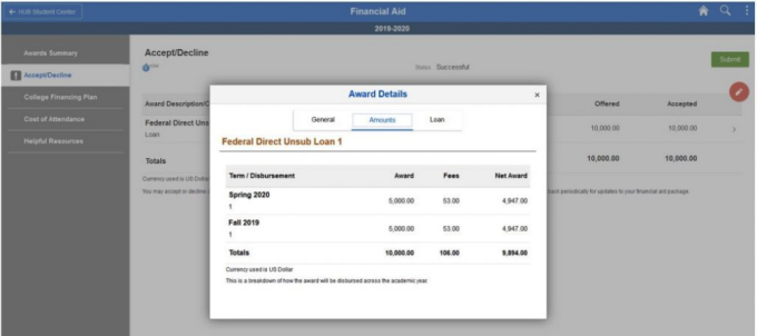 Note: Federal loans must be split evenly between each semester. To receive a different loan amount in each term, complete a Financial Aid Revision Request form.