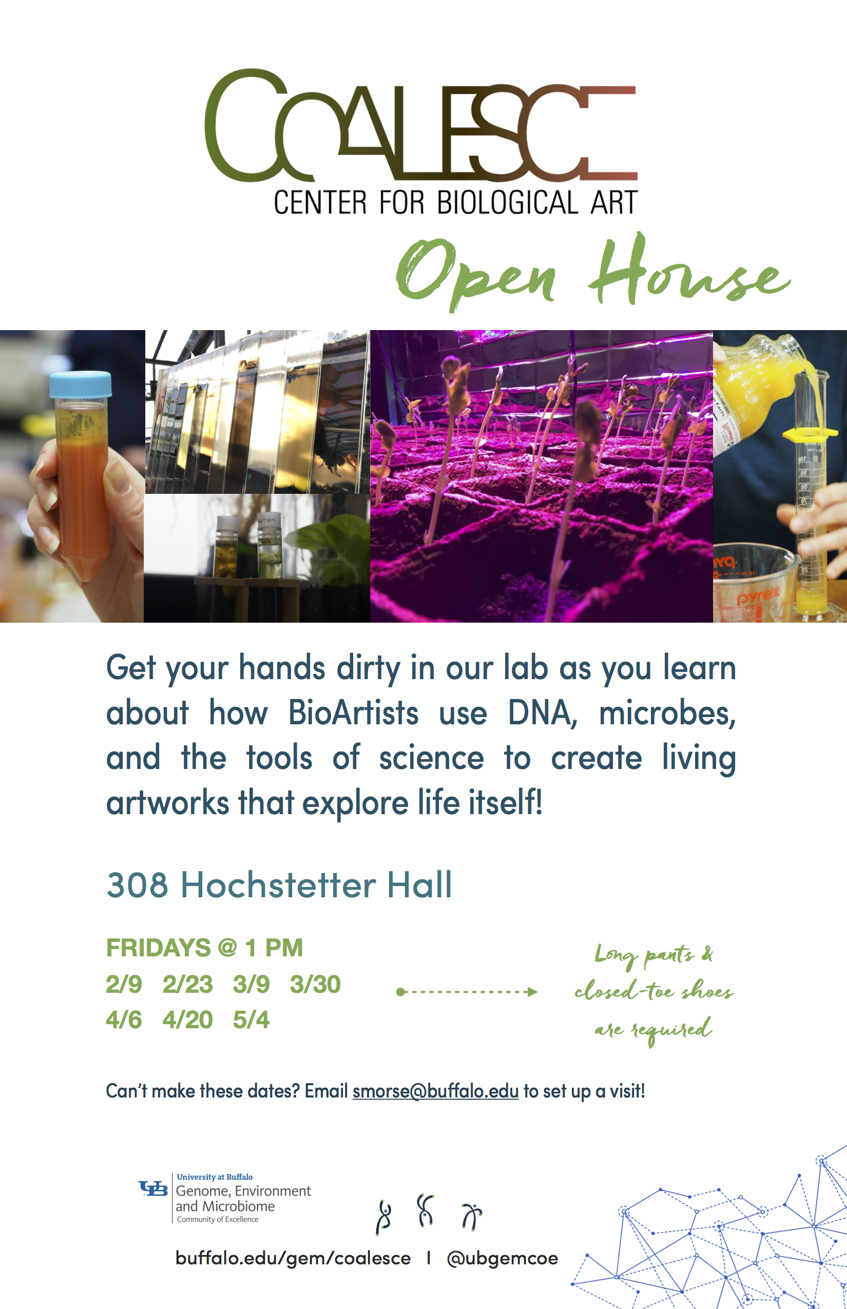As a hybrid studio laboratory dedicated to enabling hands-on creative engagement with the tools and technologies of the life sciences, Coalesce sponsors several Biological Art residencies per academic year. More information about Coalesce and the Artists in Residence can be found here.