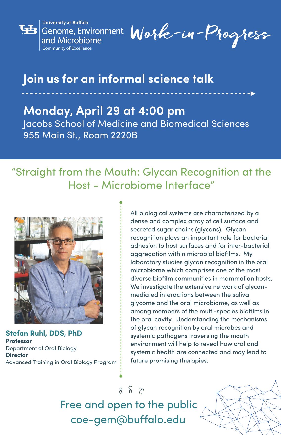"Straight from the Mouth: Glycan Recognition at the Host-Microbiome Interface", Monday April 29, 2019