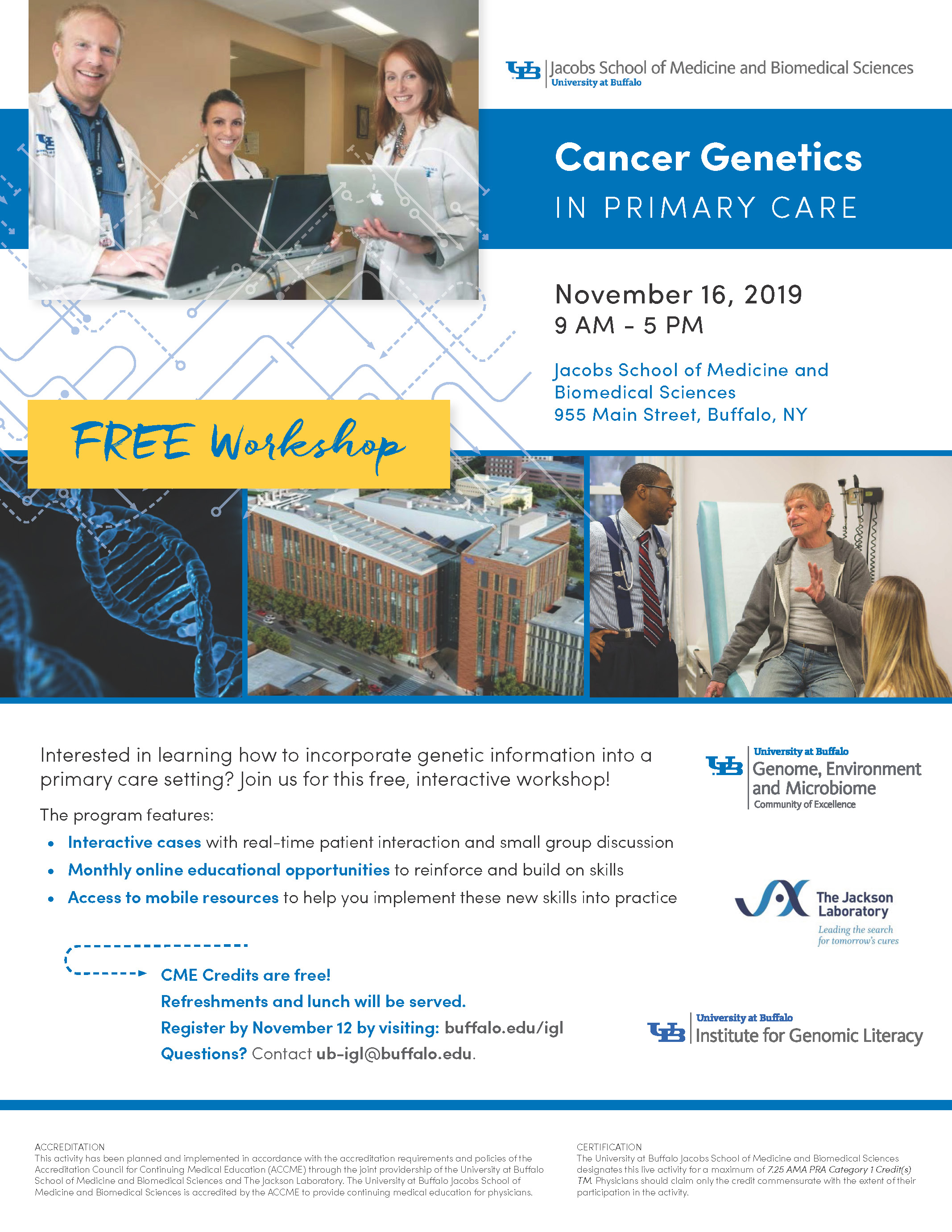 This Continuing Medical Education workshop helps attendees to use family history information to identify patients who might benefit from increased cancer screenin, genetic testing, and/or referral to a genetics specialist.
