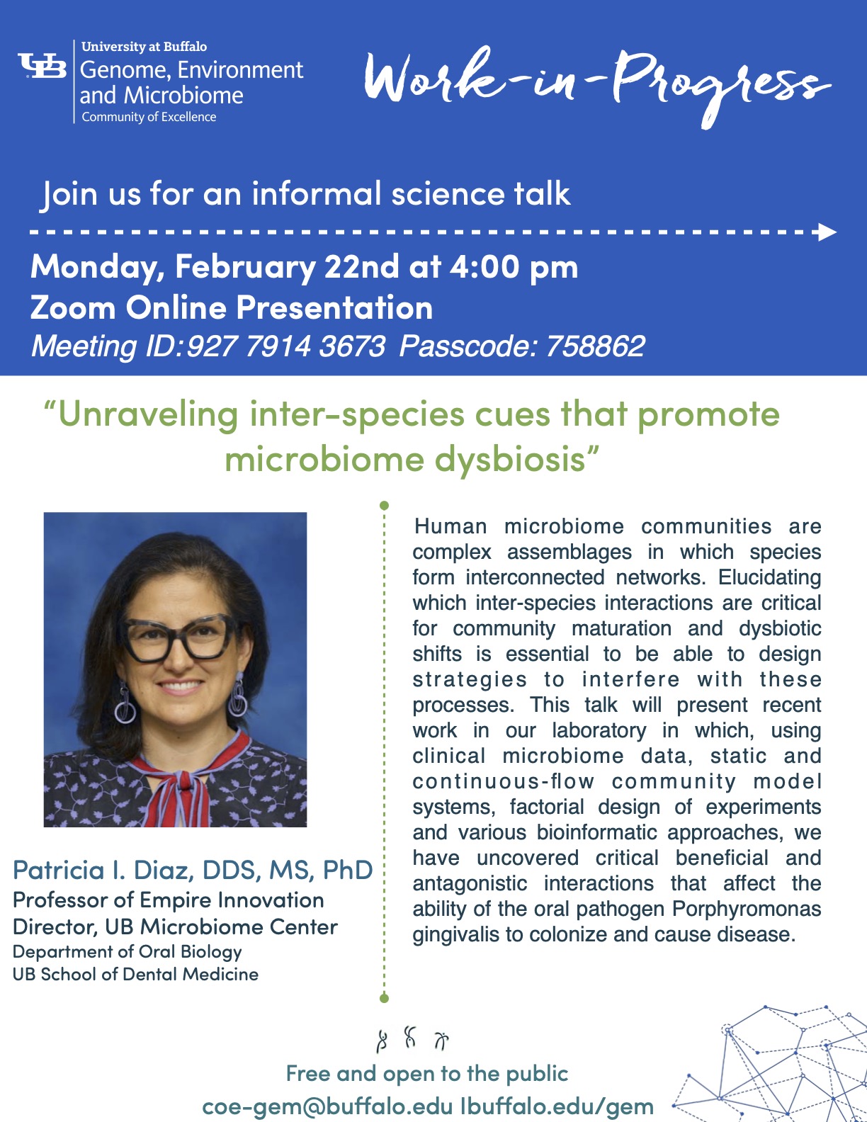 "Unraveling inter-species cues that promote microbiome dysbiosis", Monday, February 22nd, 2021.