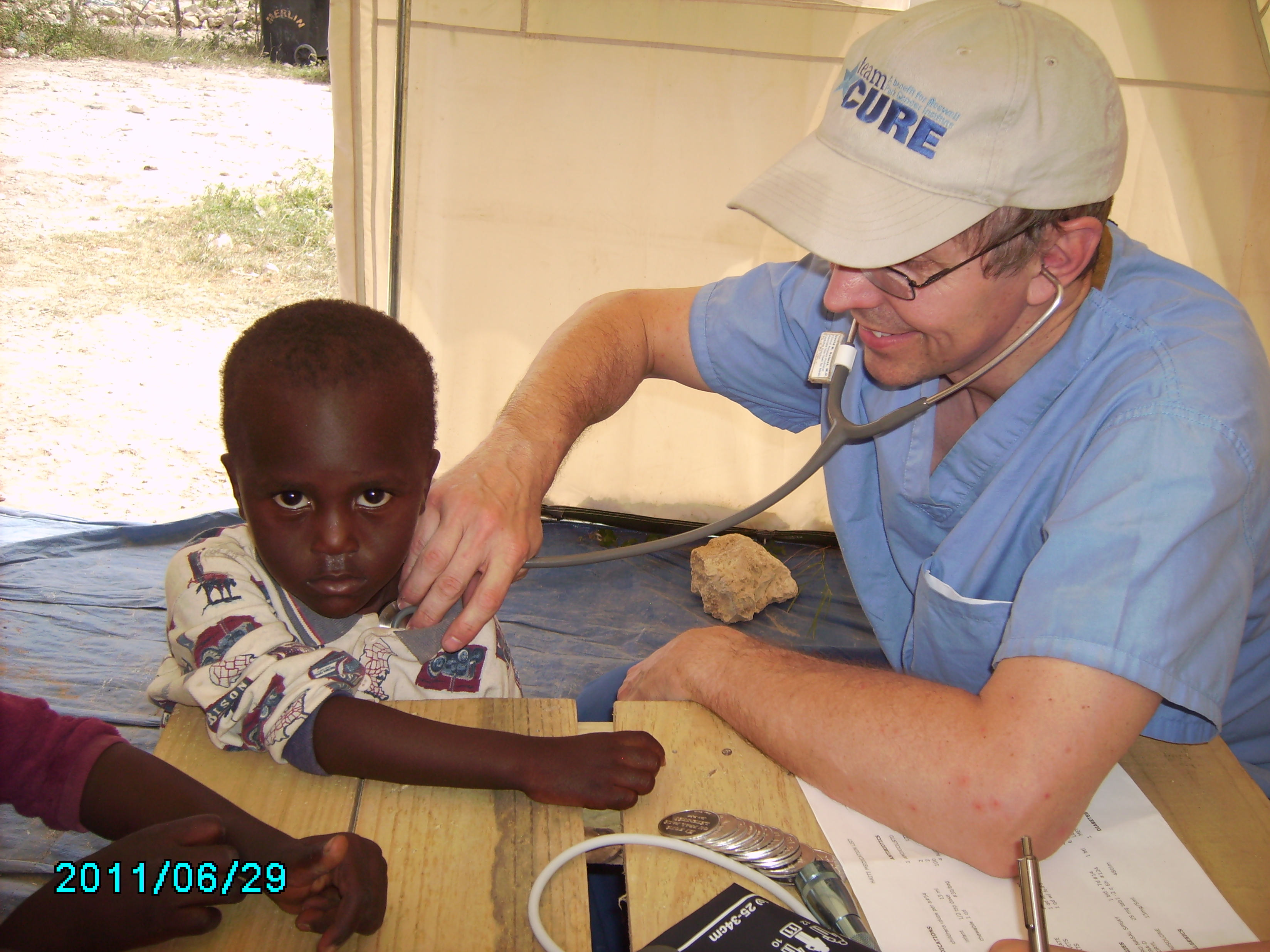 David Holmes, MD, UB associate professor of family medicine, is faculty advisor for medical students wishing to volunteer overseas. Here, he examines a boy in Haiti in 2011 one year after the devastating earthquake.