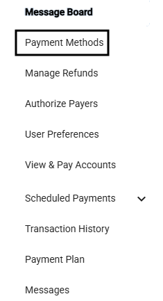 After logging into QuikPAY, select Payment Methods from the left hand navigation menu (Figure 1).