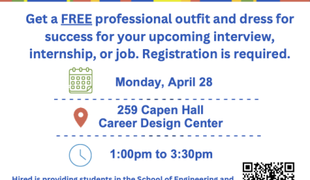 Join UB Sustainability and the School of Engineering and Applied Sciences (SEAS) for a event to provide students with gently used professional outfits for FREE from the HIRED boutique!
