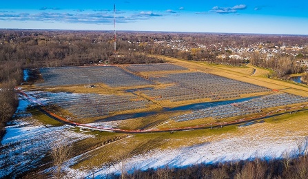 These solar panels in a large field east of Millersport Highway are among several solar arrays UB is constructing as part of its commitment to achieving climate neutrality. Photo: Douglas Levere