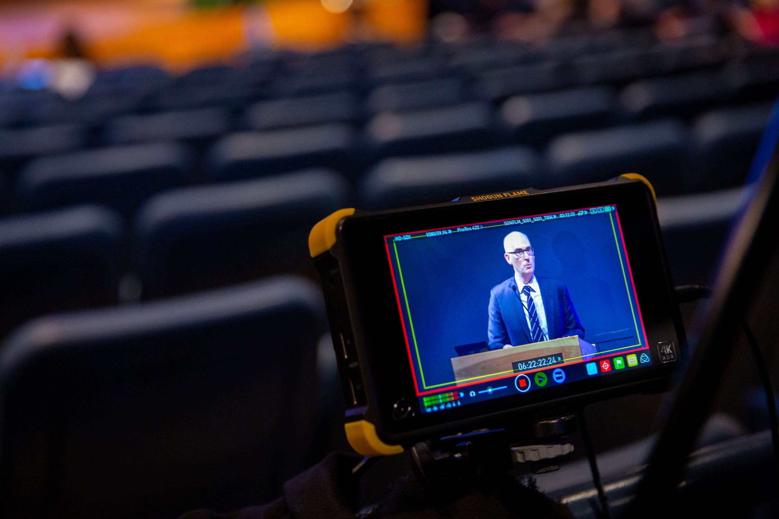 Vice Provost for Academic Affairs and Dean of the Graduate School, Graham Hammill, gives his opening remarks at the 2022 3MT competition.