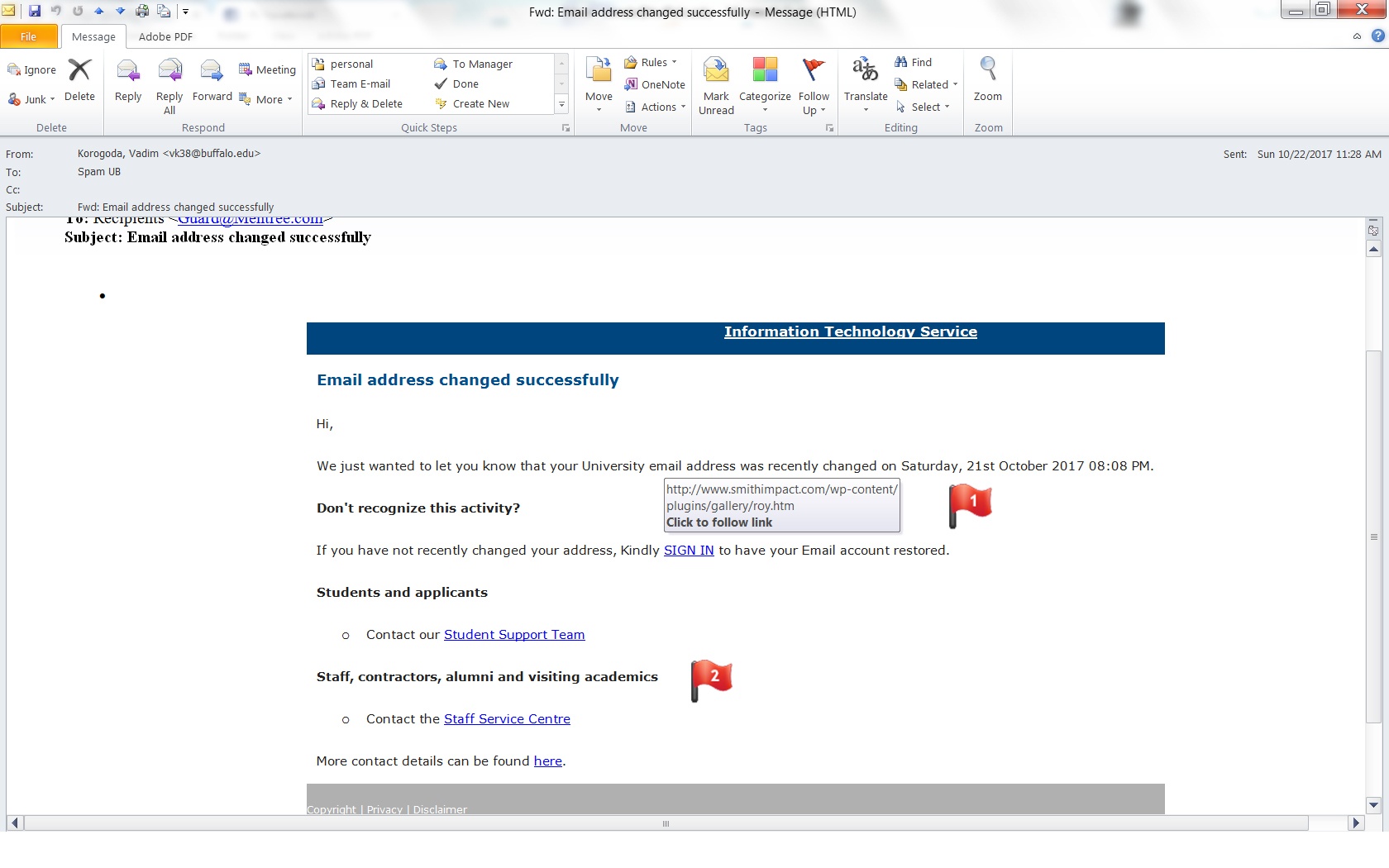 UB Login Phish - Do not click 'Email address changed successfully' email 10-23-17