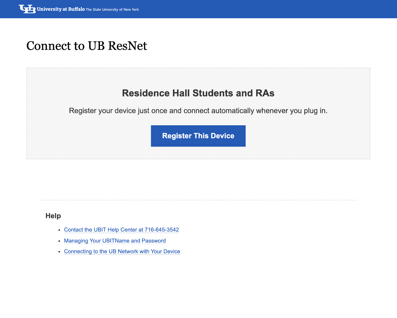 Applies To: UB students in residence halls and campus apartments