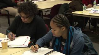 Zaid Islam (left), a resident of the Fruit Belt and graduate of the Fruit Belt leadership program, talks with a fellow participant at a recent training session.