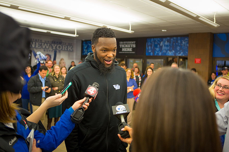 “The atmosphere is great at the tournament. Everyone’s so excited,” added senior cheerleader Shanel Ginyard. “It really puts UB on the map.”