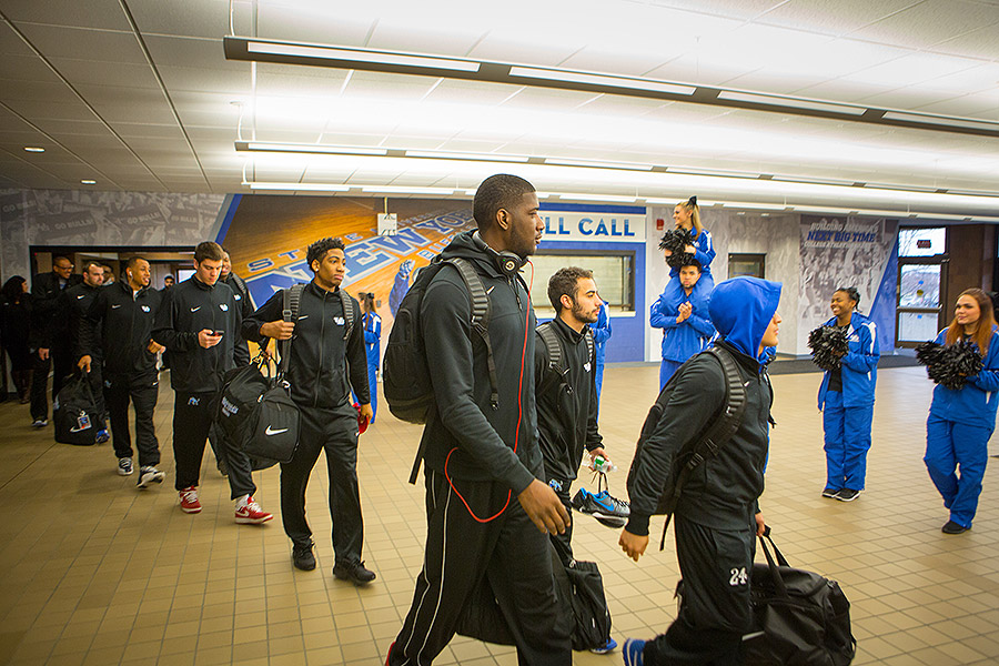 The UB Bulls take a "Walk to Victory" through the lobby of Alumni Arena yesterday before departing for Providence and their first-round game.