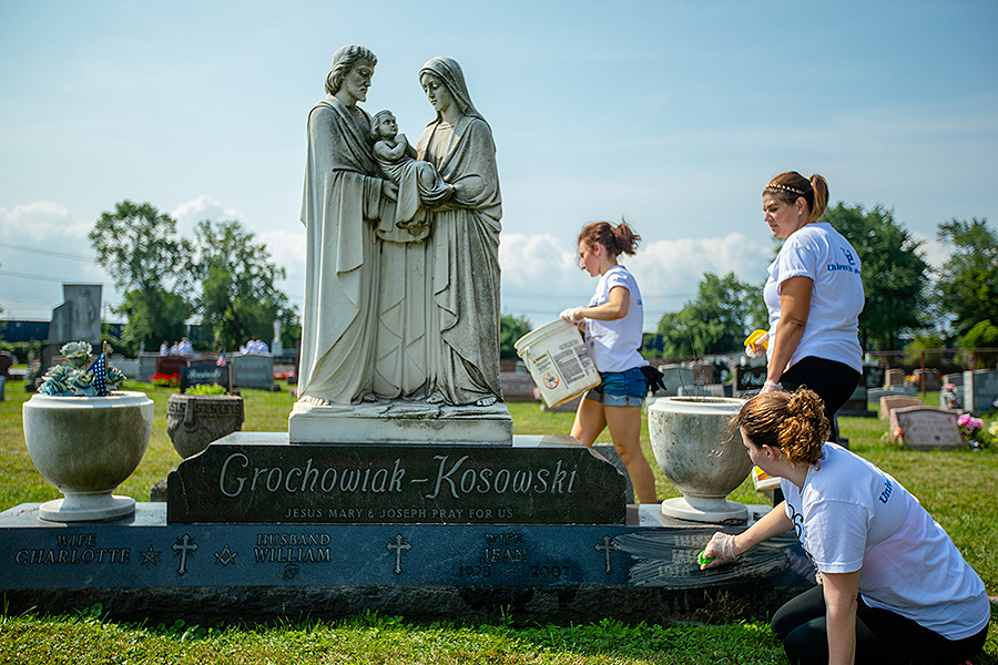 At the Holy Mother of the Rosary Cemetery, volunteers cleaned grave markers and helped look for missing headstones. The records for headstones erected before 1925 were lost in a fire and several had sunk below the ground’s surface due to the freeze-and-thaw cycle of Buffalo winters.