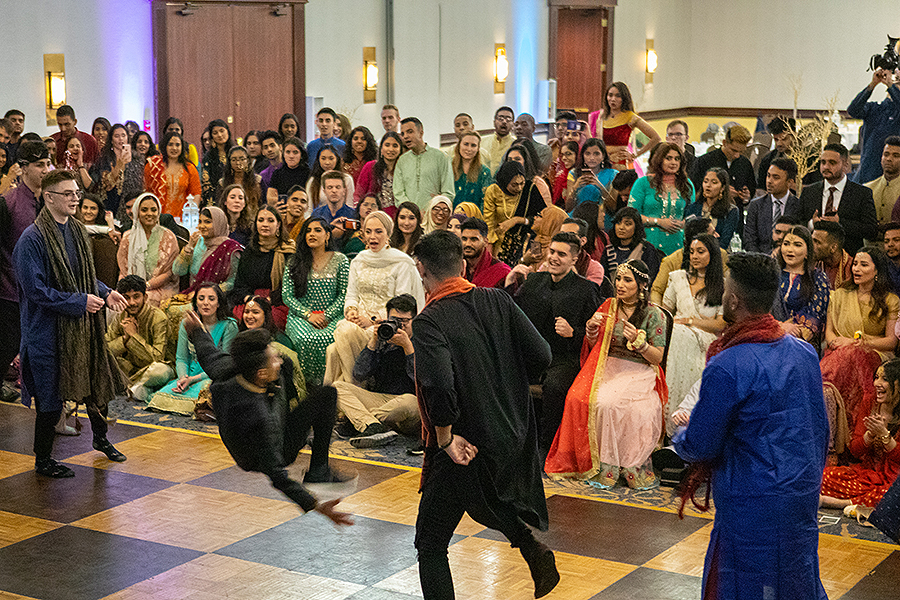 The dance floor later served its intended purpose, as wedding guests enjoyed traditional dances performed by members of the wedding party, as well as performances of Bhangra dance, which originates from India and Pakistan’s Punjab region. The crowd quickly grew thunderous, as South Asian music pulsed throughout the ballroom. This was Aamir’s favorite part of the night.