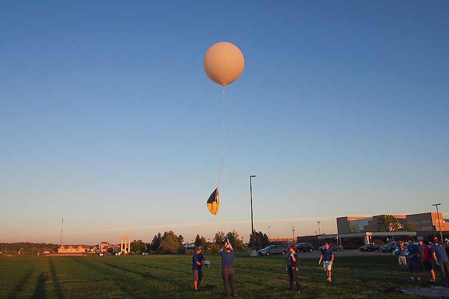 The balloon flew roughly 20 miles into the sky and traveled 100 miles east to Geneva, N.Y., before bursting due to thinning atmospheric pressure. The instruments, which landed in a field, measured radio frequency noise, important in satellite applications, as a noisier environment makes communication with the spacecraft more difficult.