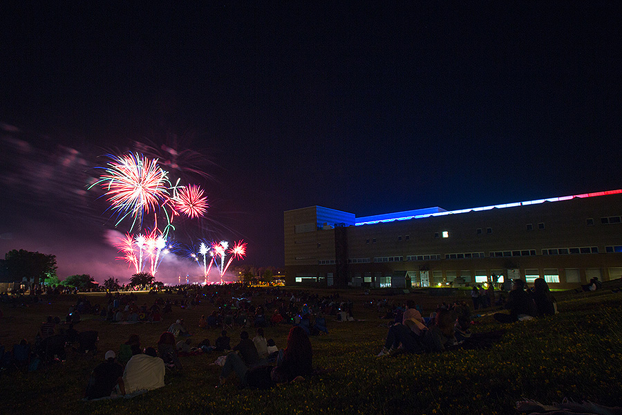Tens of thousands of spectators flocked to the North Campus on Tuesday for the annual July 4th fireworks display over Lake LaSalle. Photos: Meredith Forrest Kulwicki