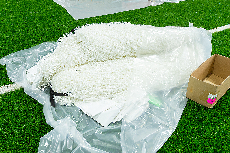 A view of the athletic divider netting.