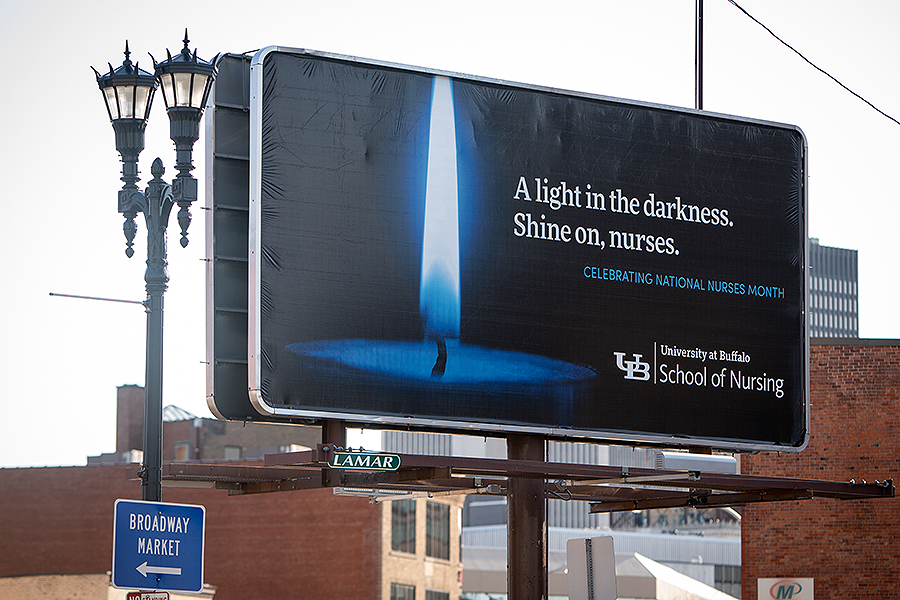 Several UB units purchased space on billboards near the Buffalo Niagara Medical Campus to express the university's appreciation for health care workers during the COVID-19 crisis. The billboards were designed by University Communications. Photos: Meredith Forrest Kulwicki
