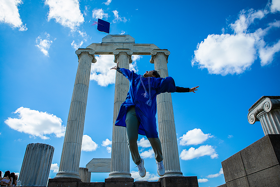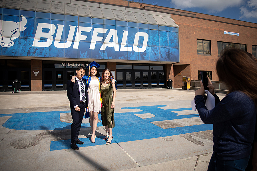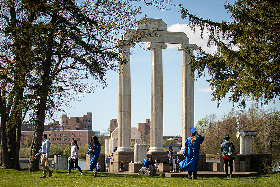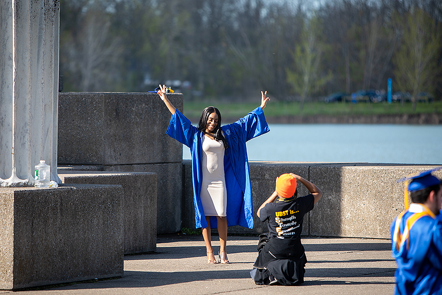 Many UB students document their graduation from the university by having their photos taken at iconic spots on campus. And that's still been the case, despite this year's unconventional commencement season. UBNow concludes its coverage of Commencement 2020 by visiting some of these spots as members of the Class of 2020 take part in this commencement tradition. Photos: Meredith Forrest Kulwicki and Douglas Levere