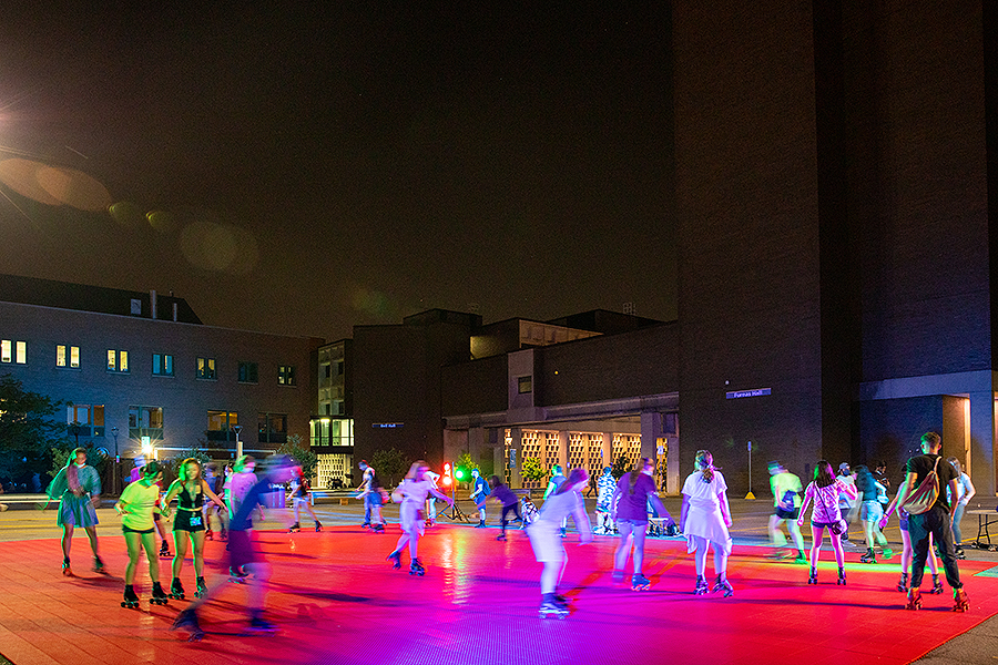 On the field near the Student Union, the "Giant Blacklight Video Dance Party" also attracted an enthusiastic crowd. Photo: Meredith Forrest Kulwicki