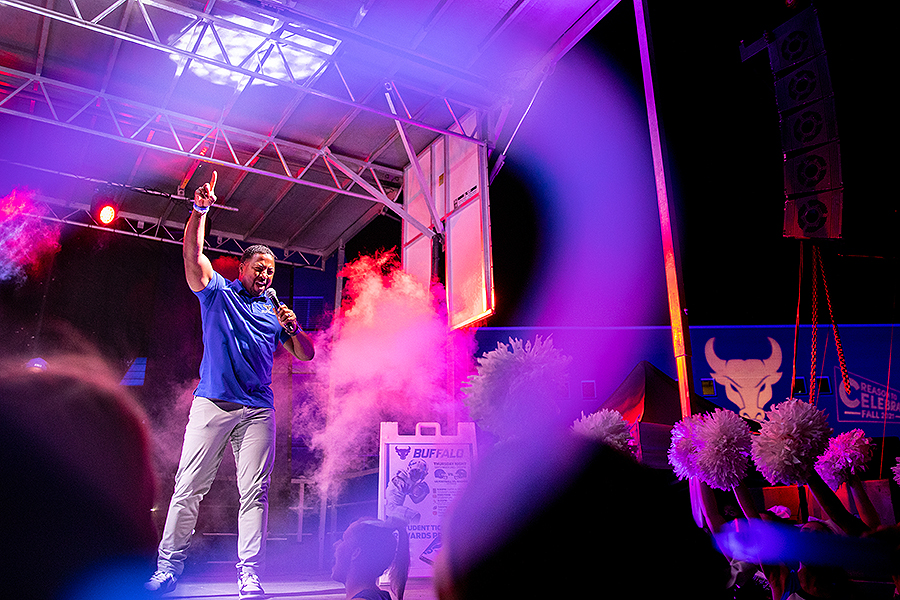 On Sunday night, Victor E. Bull took the stage at the pep rally. Photo: Meredith Forrest Kulwicki