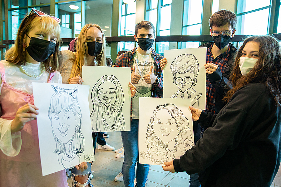 There have been various "stress-buster" activities available to students. Caricature artists were around on Monday.