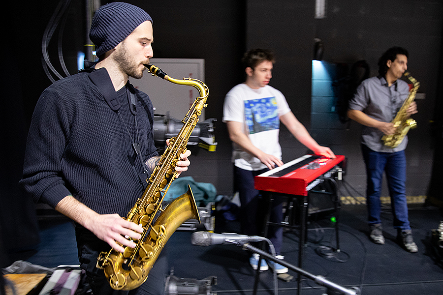 Once each semester, the dance program in the Department of Theatre and Dance hosts a Live Music and Dance Improvisation Jam. University Communications photographer Meredith Forrest Kulwicki caught up with dance students who took part in the event in early April, organized by Melanie Aceto, associate professor and director of undergraduate dance.