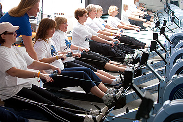 Rock music blasts from a stereo, adding to the clamor in a basement room in Alumni Arena where giant fans whir, propellers turning to keep the space cool. More than a dozen women of all ages—all cancer survivors—slide backward and forward on indoor rowing machines, pulling, with all their strength, on handlebars that mimic oars.
