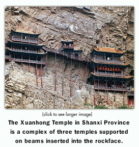 In one case, a Confucian school connects a Buddhist temple to a Daoist shrine via a series of literal and metaphorical bridges. The structures are strung out along a sheer rock face on long, slender pillars, a living example of the relationships among man, earth and the spiritual realm.