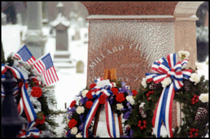 Wreaths from President Clinton and other organizations adorn the gravesite of Millard Fillmore, 13th president of the United States and UB's first chancellor, during the university's annual commemoration of Fillmore's birthday.
